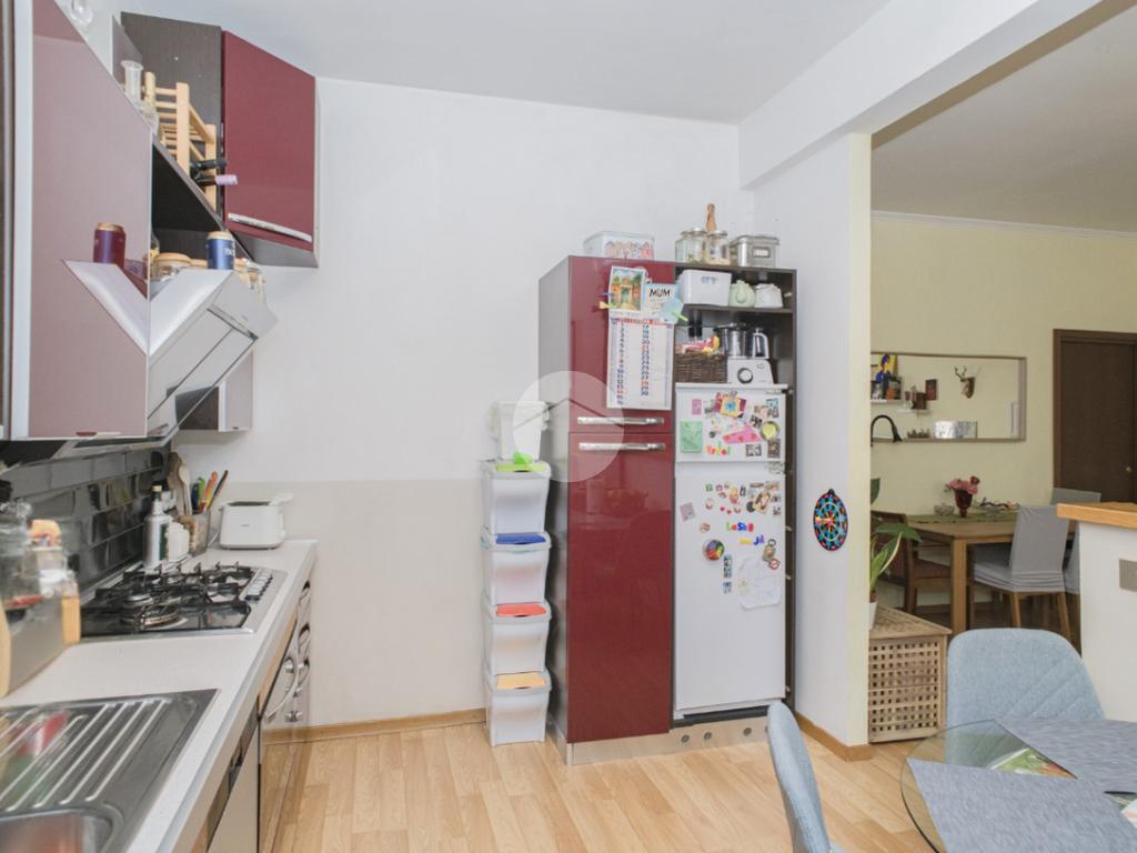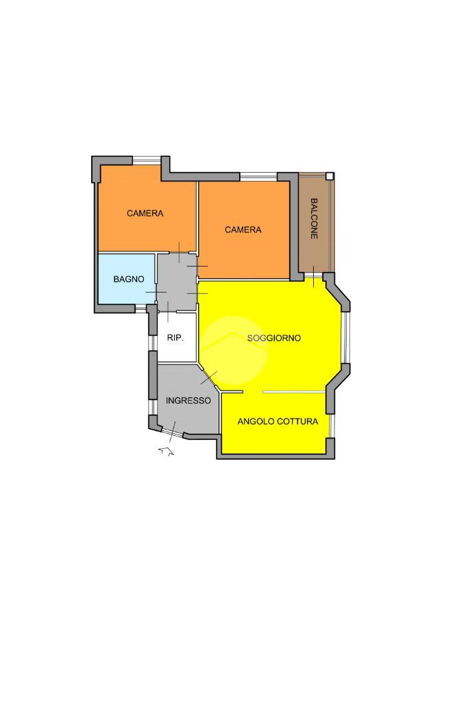 L'appartamento è composto da ingresso, soggiorno con angolo cottura, due camere, bagno, ripostiglio e balcone. Inoltre, è compresa nel prezzo anche una cantina di pertinenza.