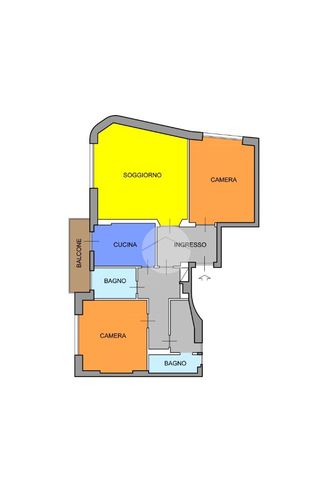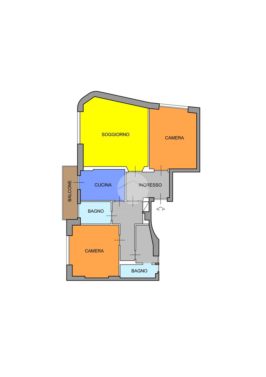 L'immobile si compone di ingresso, soggiorno, due camere, cucina abitabile, due bagni, balcone e cantina.